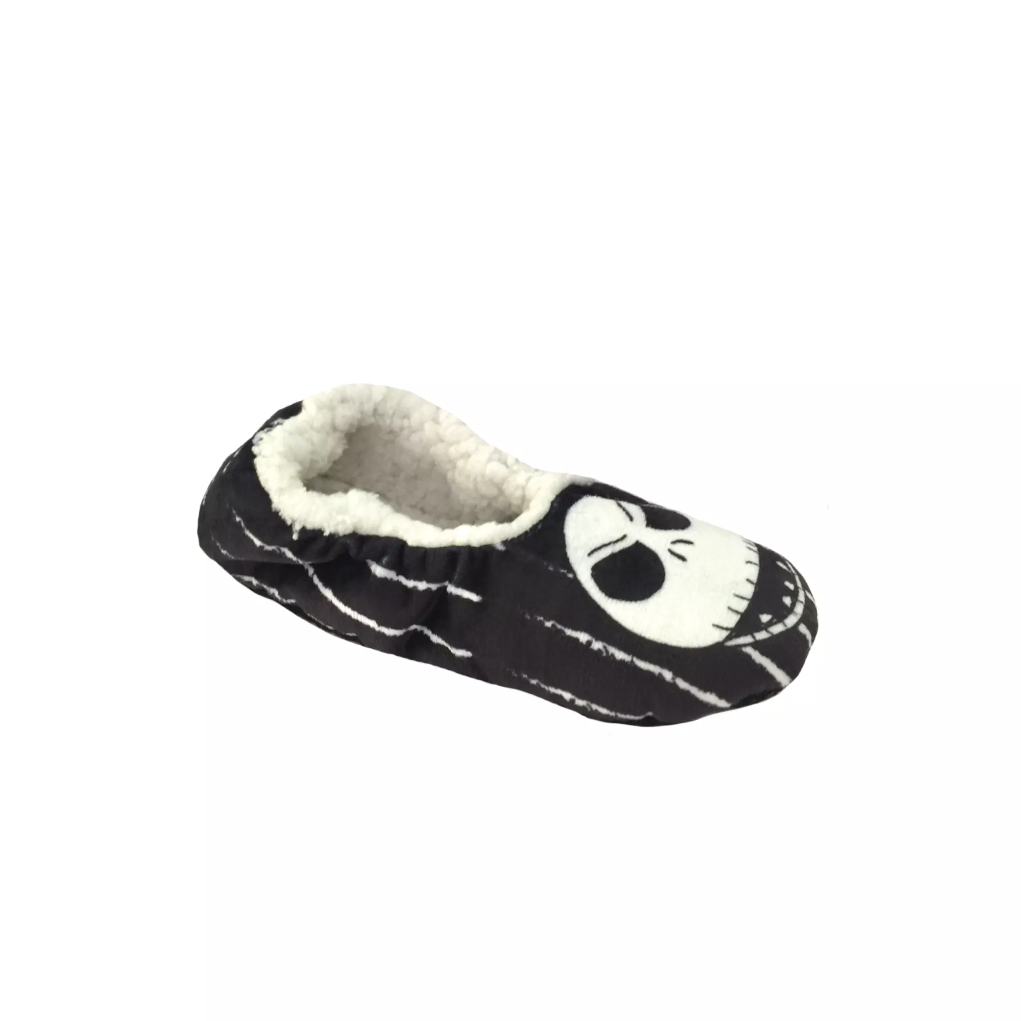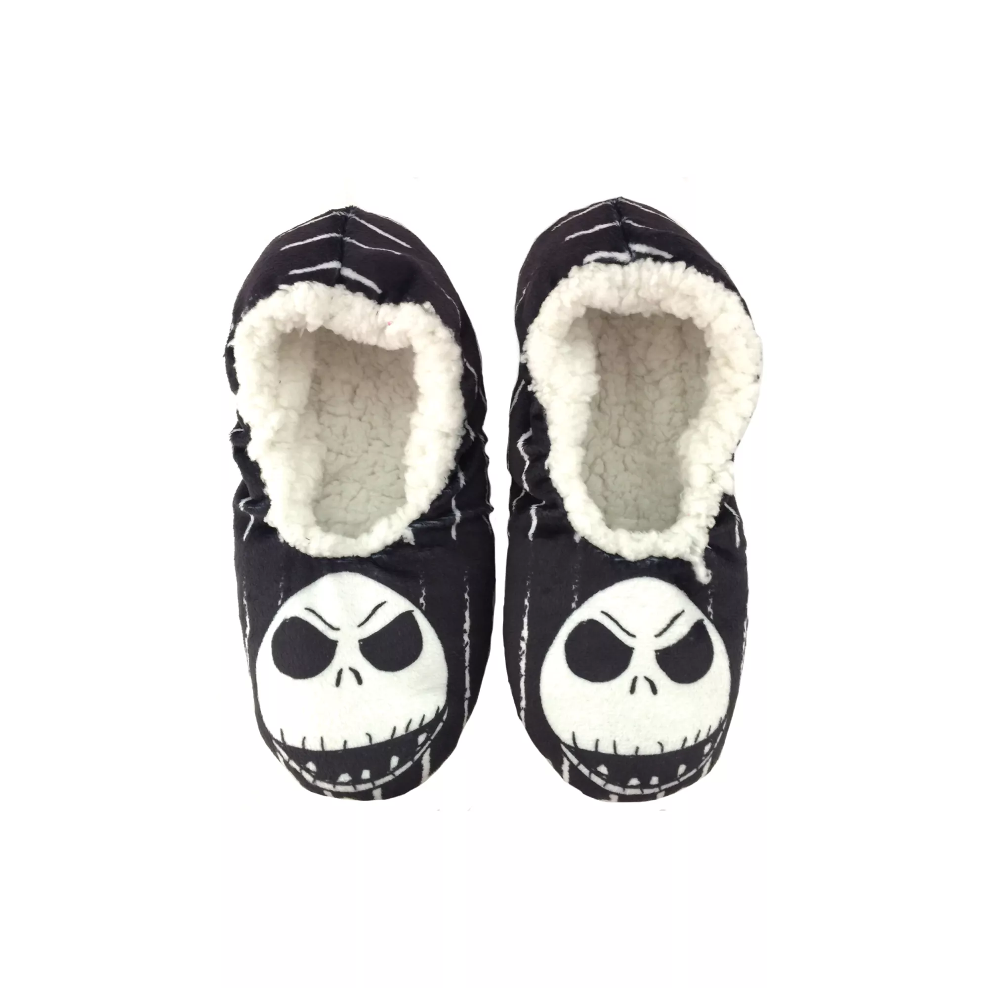 Keep your feet nice and cozy with these officially licensed Jack Skellington slippers! These black slippers have white stripes and Jack's face on the toes, making them perfect for anyone who loves Nightmare Before Christmas!