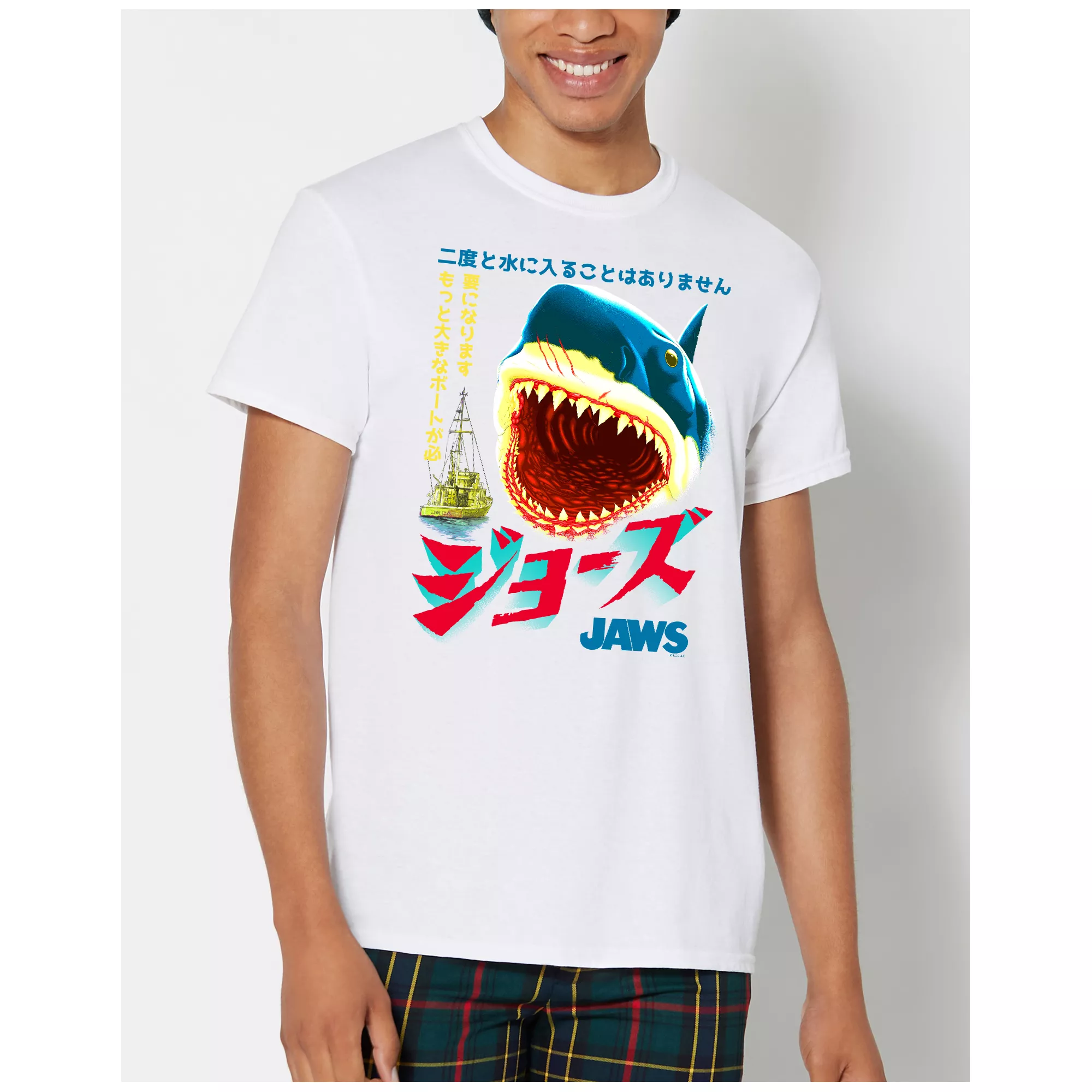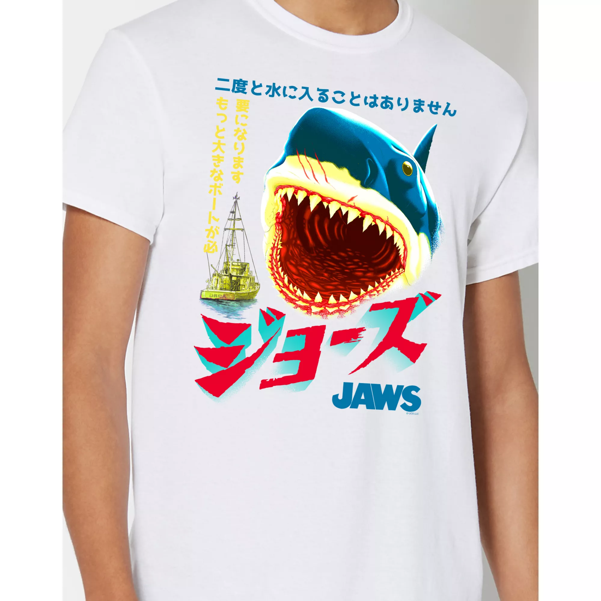 Everyone will know you're a total thrill seeker when you wear this Japanese Jaws Poster T Shirt. This cool tee features a giant Shark on the front that's perfect for fans of the original film or other shark enthusiasts. You'll b looking sweet this shark week with this Jaws t shirt on.