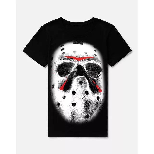 Consider yourself the ultimate fan of horror? Gear up in this officially licensed Jason Voorhees Mask T Shirt and everyone will know you’re the real deal! You’ll love rocking this comfortable tee on the couch the next time you sit down to watch the Friday the 13th series.