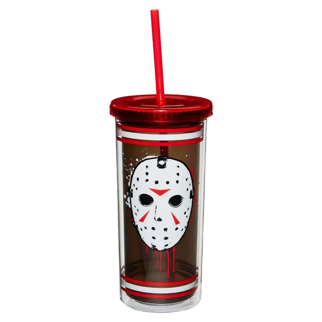 Screaming and running away from a killer all night can sure make you thirsty! Quench your thirst this Halloween with this officially licensed Jason Voorhess Jersey Cup with Straw and you'll never have to worry about Jason catching you!