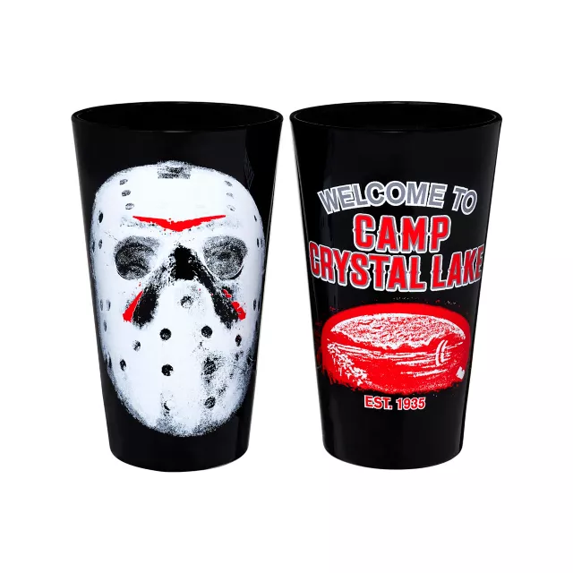 Serve up all the bloody chills of your favorite horror movie with this official Friday the 13th pint glass set! These two pint glass feature Camp Crystal Lake and Jason Voorhees's mask and are perfect for a Halloween party or any spooky gathering.