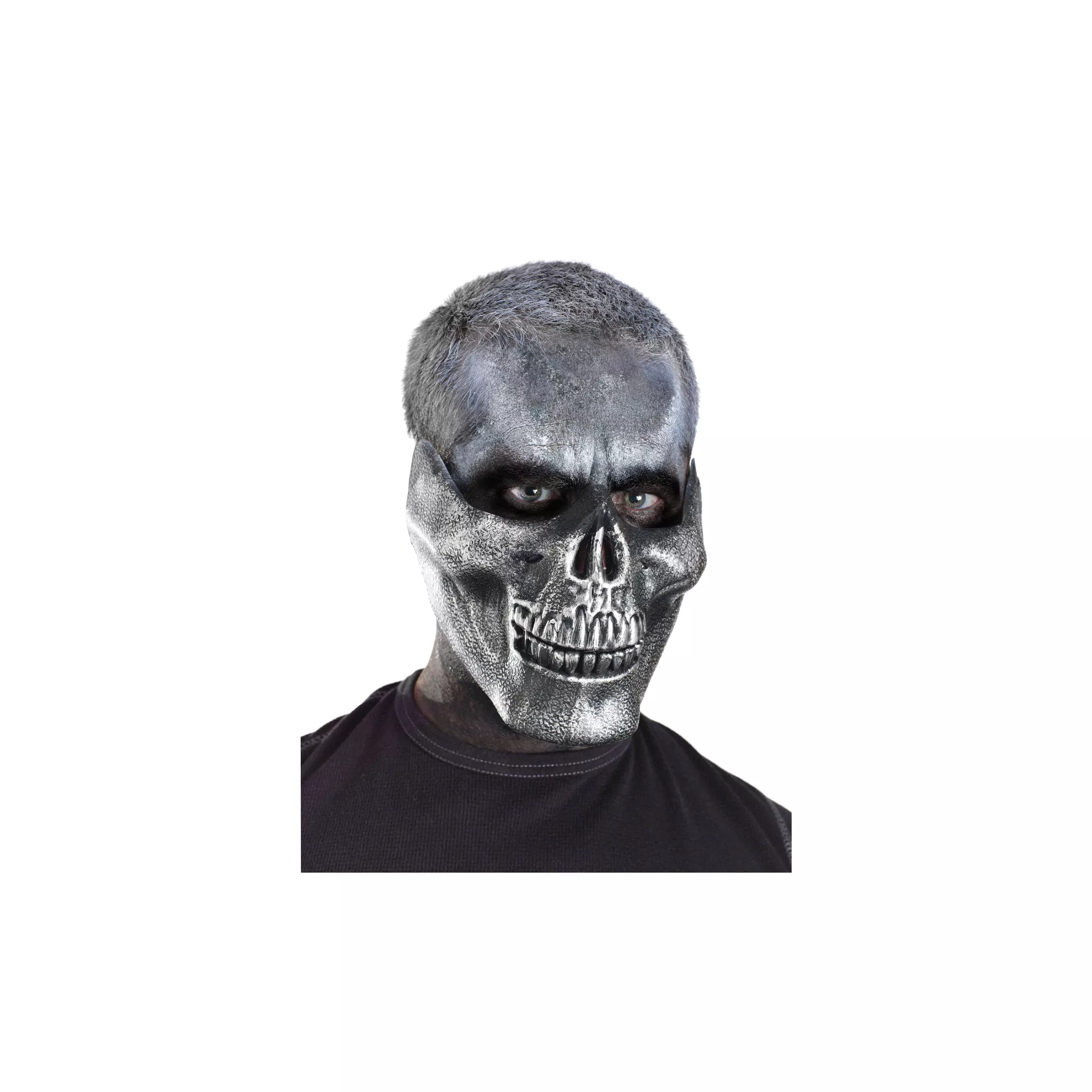 Top off your scary skeleton costume with this excellent Skull Jaw Mask. The silver half mask covers the lower portion of your face, from the nose down, creating a killer effect.