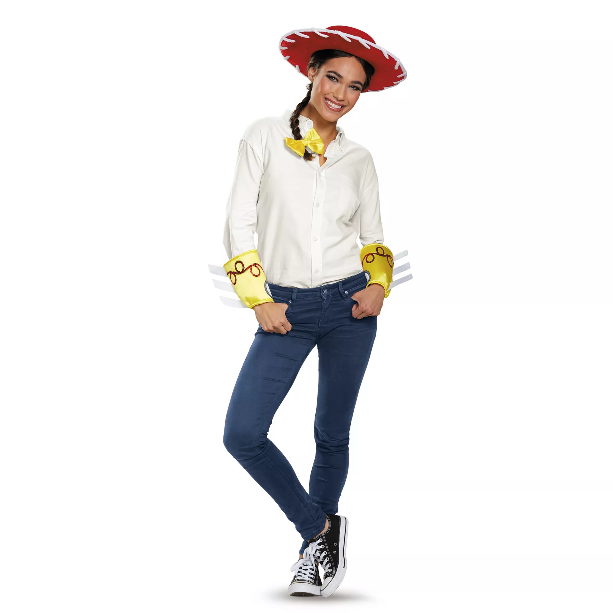 Saddle up and ride off into the sunset with Woody or Buzz or both when you create your Toy Story 3 Jessie costume with this officially licensed Accessory Kit.