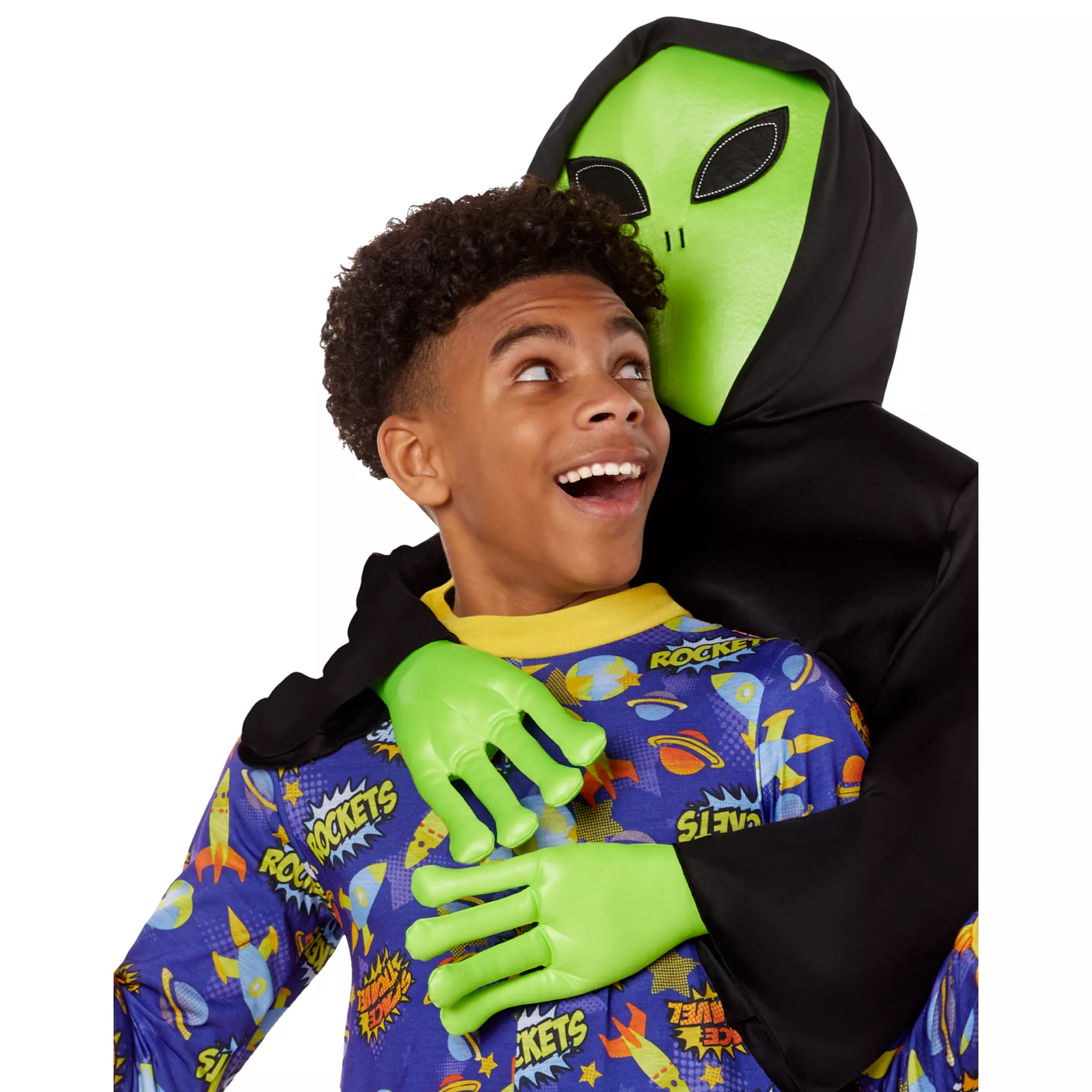 Greetings, earthling! You'll look like you've been abducted this Halloween when you wear this alien abduction costume. Slip into the adorable space travel pajamas and let the alien carry your weight!