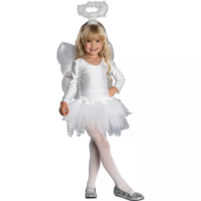 Look and feel heaven-sent when you wear this Angel Tutu girls costume. The white, 100% polyester outfit comes complete with leotard, tights, wings and a halo.