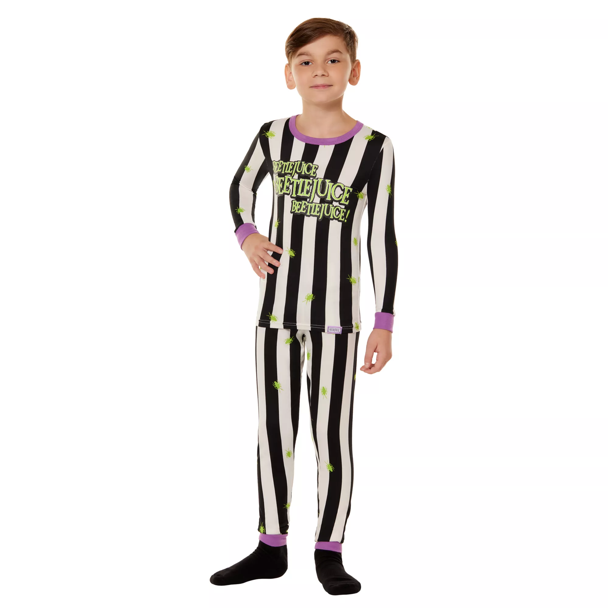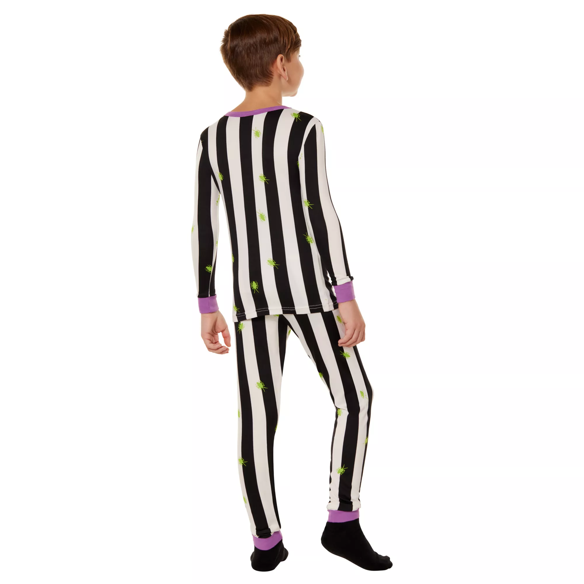 Beetlejuice, Beetlejuice, Beetlejuice! Snuggle up in ghoulish style with this Beetlejuice-inspired pajama set! This officially licensed pajama set, which includes a pajama shirt and pajama pants that resemble Beetlejuice's iconic pinstripe suit, is the perfect choice for anyone looking to show their love for their favorite freelance bio-exorcist.