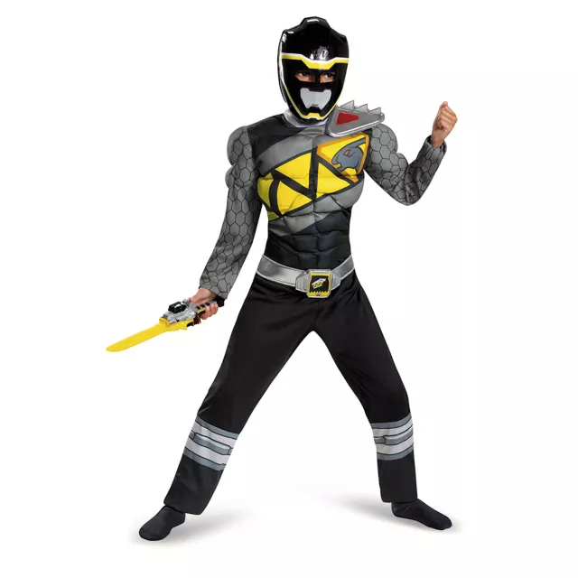 Para charger engage! Take a break from skateboarding and talking to girls and get ready to protect the Energems in this officially licensed Power Rangers Dino Charge Black Ranger Costume! This black Dino Ranger is ready to take down Sledge in this jumpsuit with muscle torso and arms featuring a detachable shoulder piece, scale graphic arms, and an attached silver belt with detachable Dino Charge logo belt buckle! Transform into a real ranger with the black character mask with eye slots so you can see all of your enemies during battle. It's about to get wild this Halloween when you suit up as the Black Ranger!