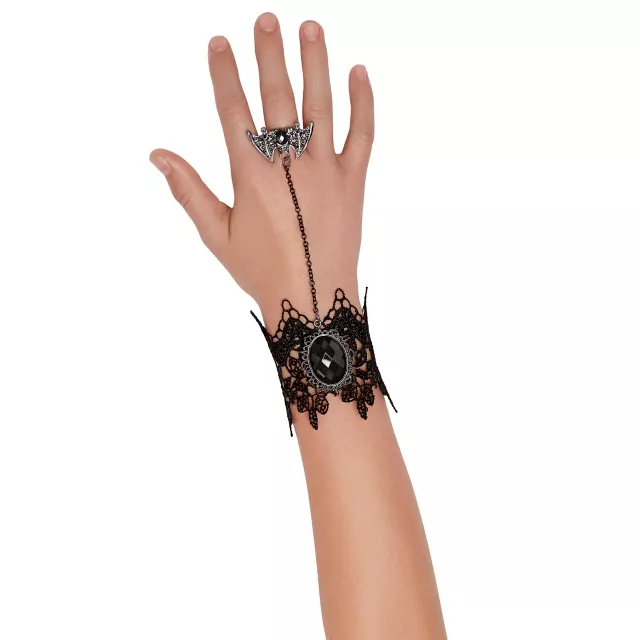 Embellish your hand while showcasing your love for Halloween blood-suckers with this elegant black vampire handchain! This is the perfect accessory for any vampire fanatic.