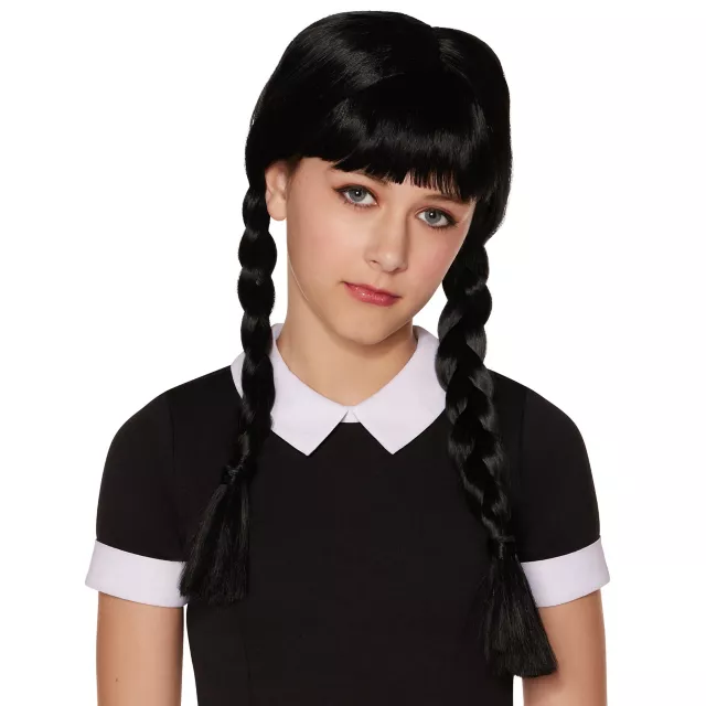 This year, complete your Halloween look with this Kids Braided Wig with Bangs! This sleek black wig will give you that creepily cute flair you're looking for.