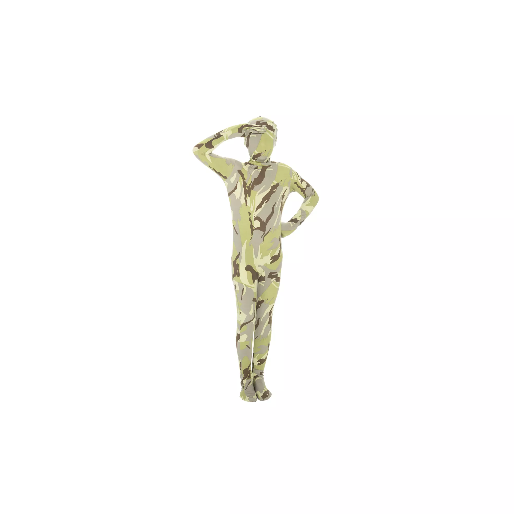 Blending in is what you'll do best on Halloween when you wear this Camo Skin Suit Child Costume. The enemy will never see you coming in this stretchable and breathable body suit that allows you to dodge just about anything. That is if they can even see you first.