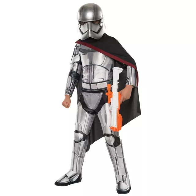 Assist the First Order on a mission for complete takeover with the officially licensed Star Wars Force Awakens Captain Phasma Deluxe Child Costume! Evade everyone's fire blasters in this fire-stopping chrome suit which features a foam armor and shiny steel finish. Set yourself apart from the other stormtroopers with your free-flowing black cape which features a dark burgundy trim. Show no mercy as you equip yourself with the fierce two piece helmet. Verify your villain status this year and blast those good guys to smithereens!