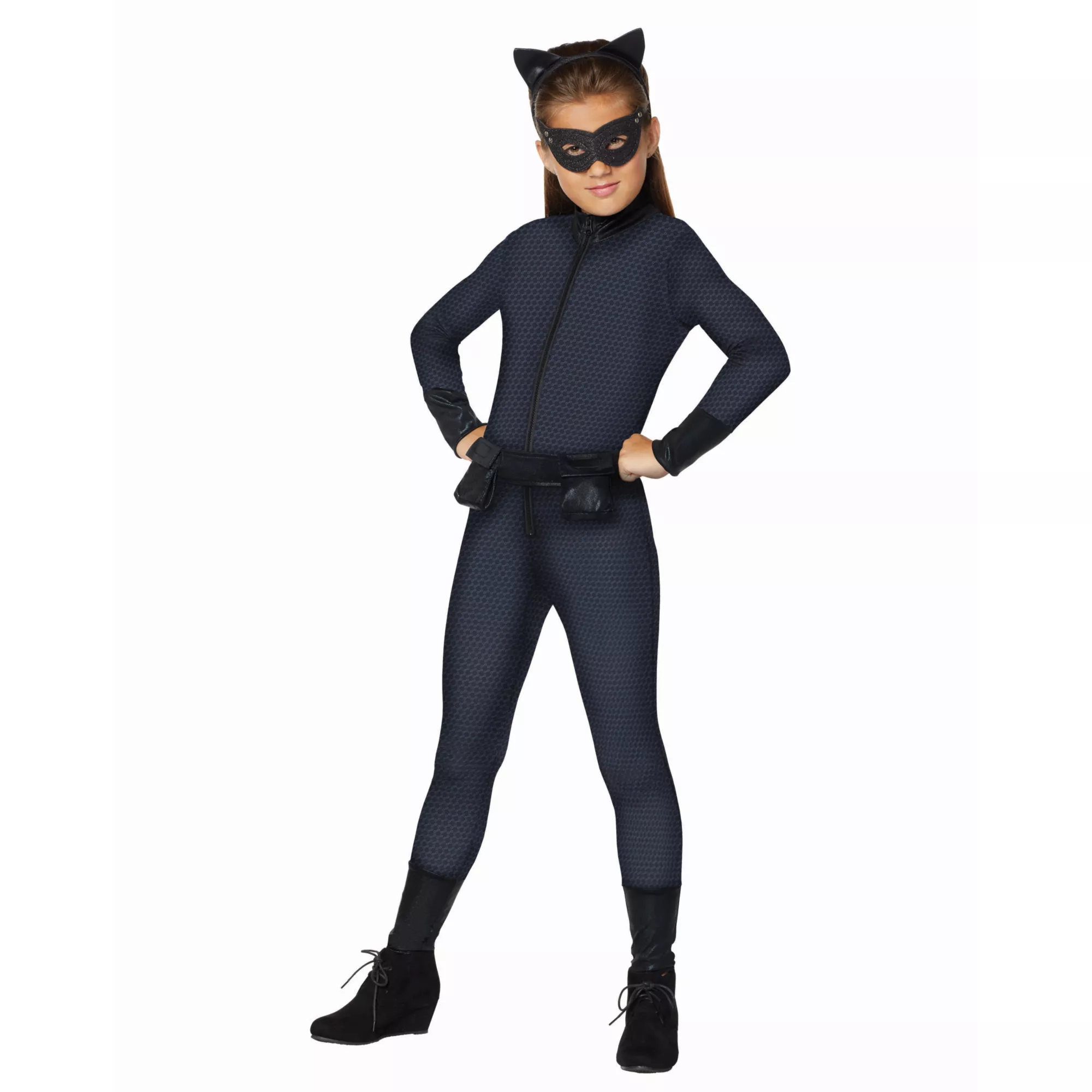 Get ready to take on all the bad guys this Halloween when you dress up in this officially licensed Catwoman jumpsuit! This one piece Catwoman costume will have you feeling comfortable so you can collect all the candy, and protect the town from villains! The included jumpsuit, headband, mask and utility belt will have you looking like you just stepped our of a comic book!