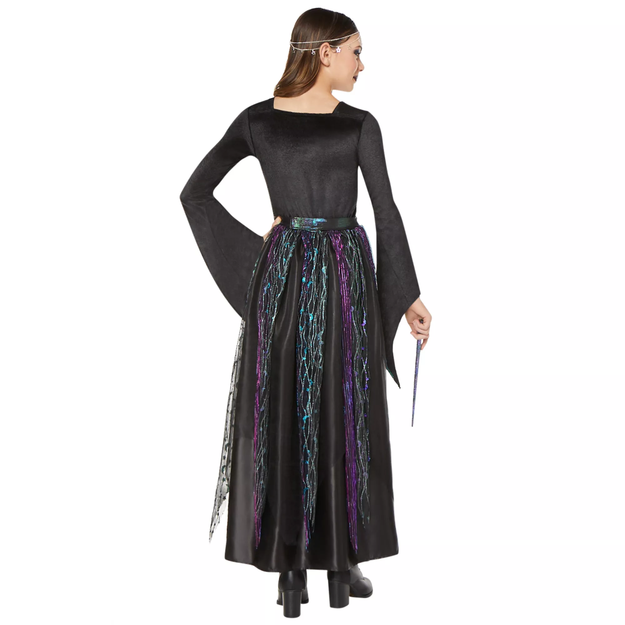 Ready to cast a spell? This Celestial Sorceress costume is perfect for you! With gittery details, a matching headpiece, and of course, a magic wand, you'll be ready to take on any full moon that comes your way.