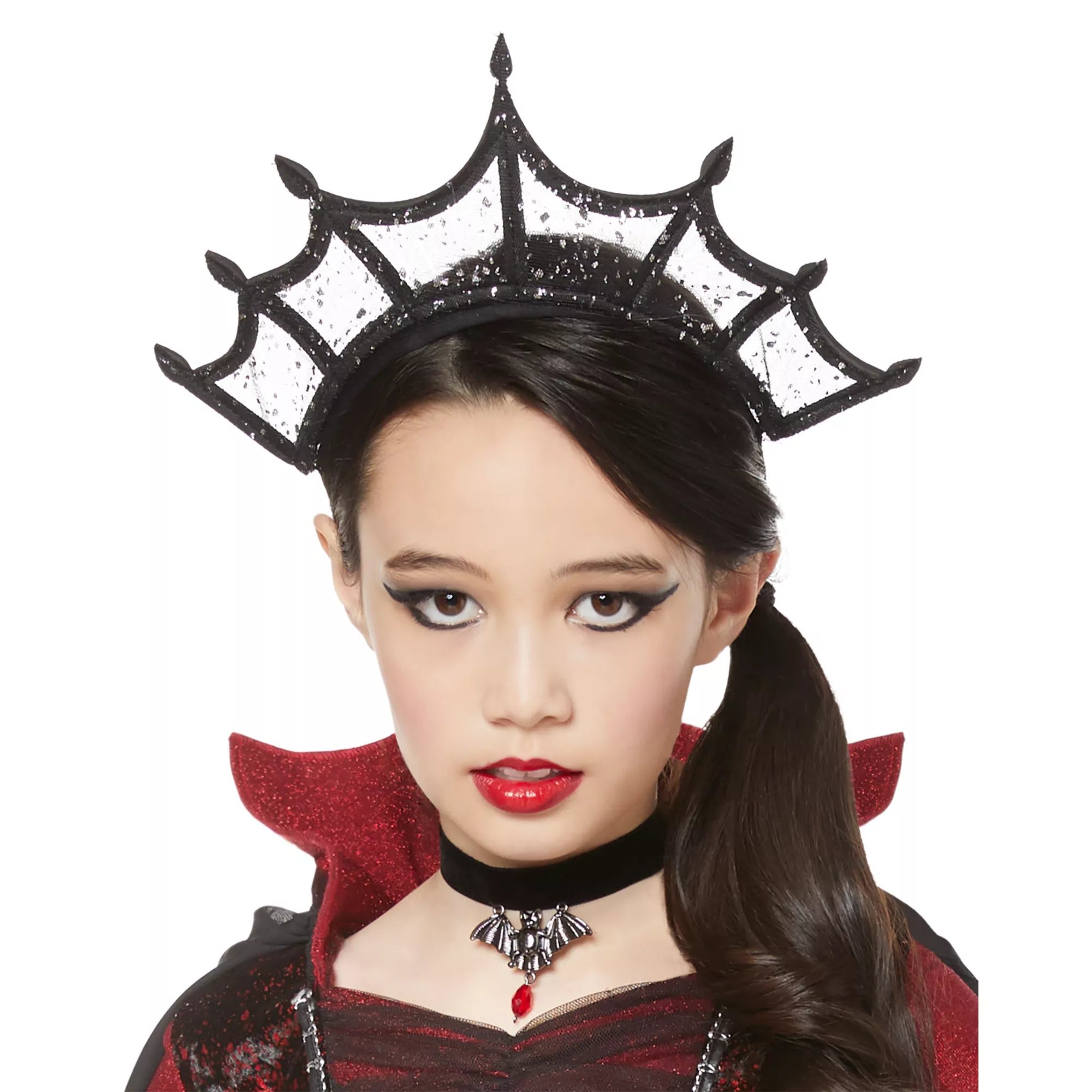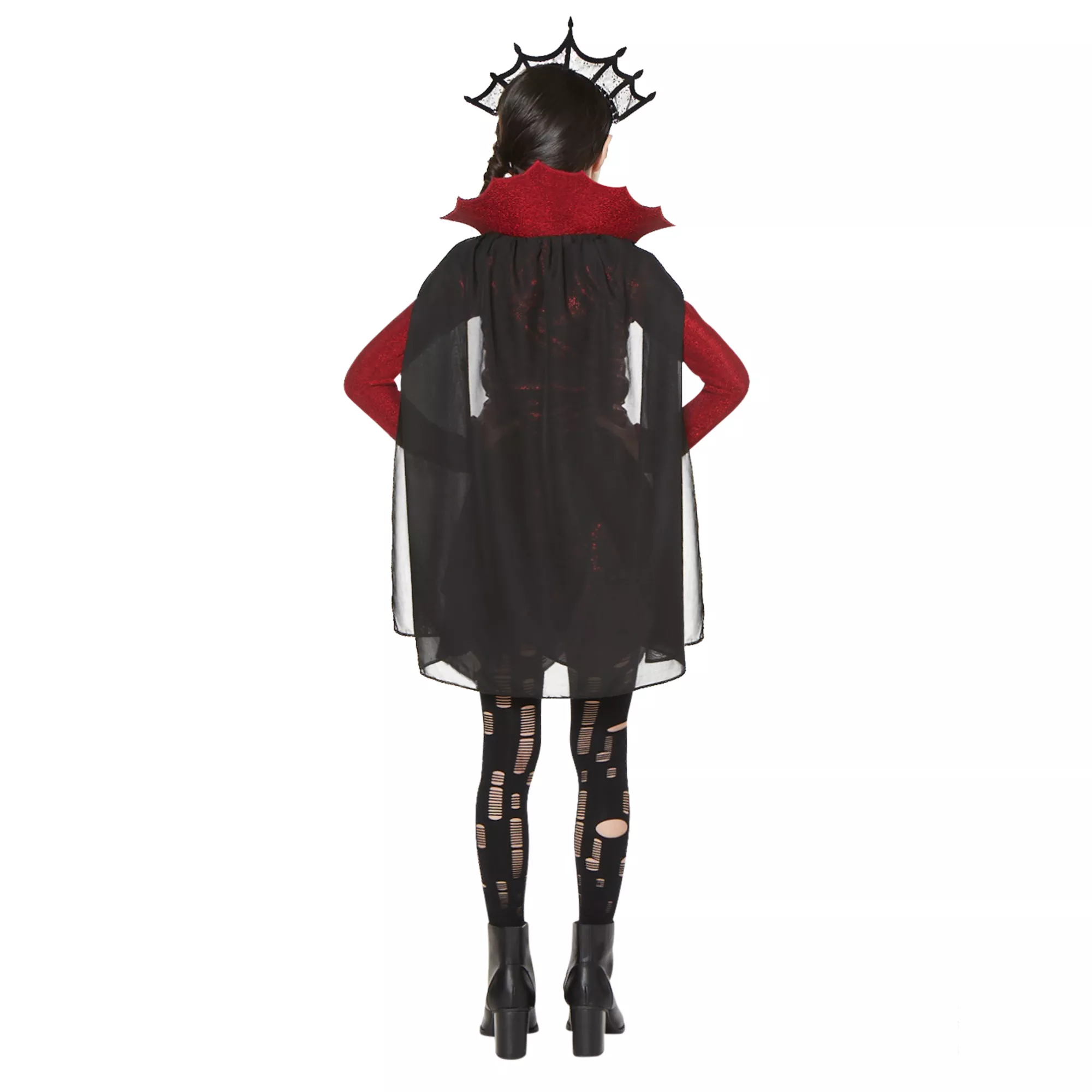 Beautiful, dark, and ready to take on the streets this Halloween! This dark beauty costume is scary and stunning all at the same time. Slip into the glitter-detailed dress with attached cape and you'll be ready to collect only the best Halloween candy. Add the included headpiece, choker and tattered tights for a complete look.