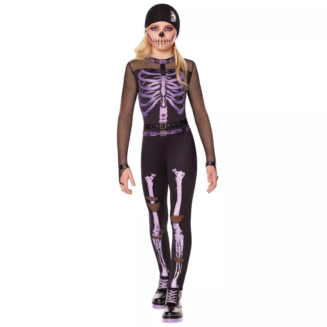 You'll have one of the best looking skeleton costumes around this Halloween when you show up wearing this dark rebel skeleton costume. This stylish skeleton outfit features everything you need to fully embrace your gothic side including a skeleton jumpsuit, bracelet, two belts, and a skeleton hat to top it all off. With this panted look you'll be looking ready for any types of skeleton business.