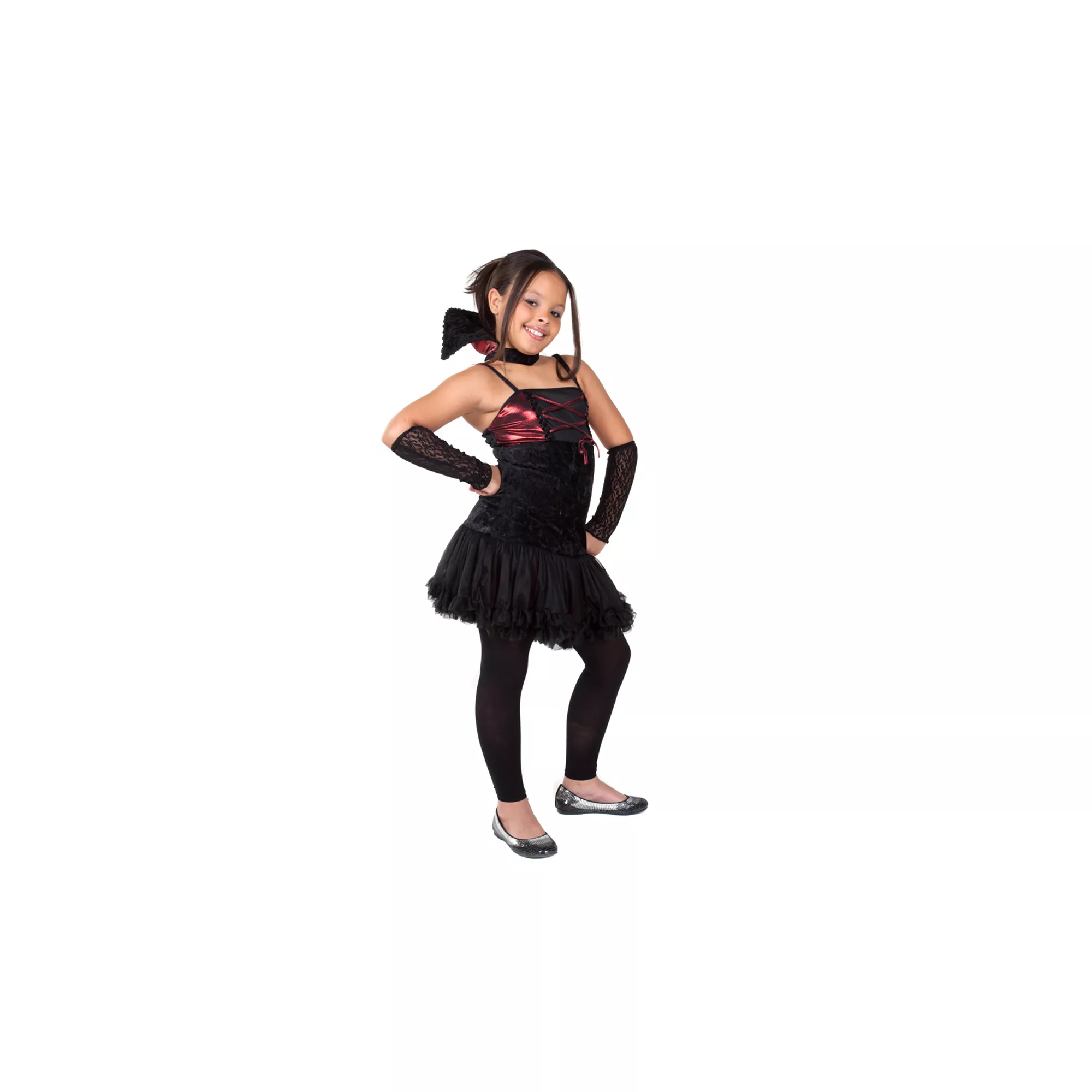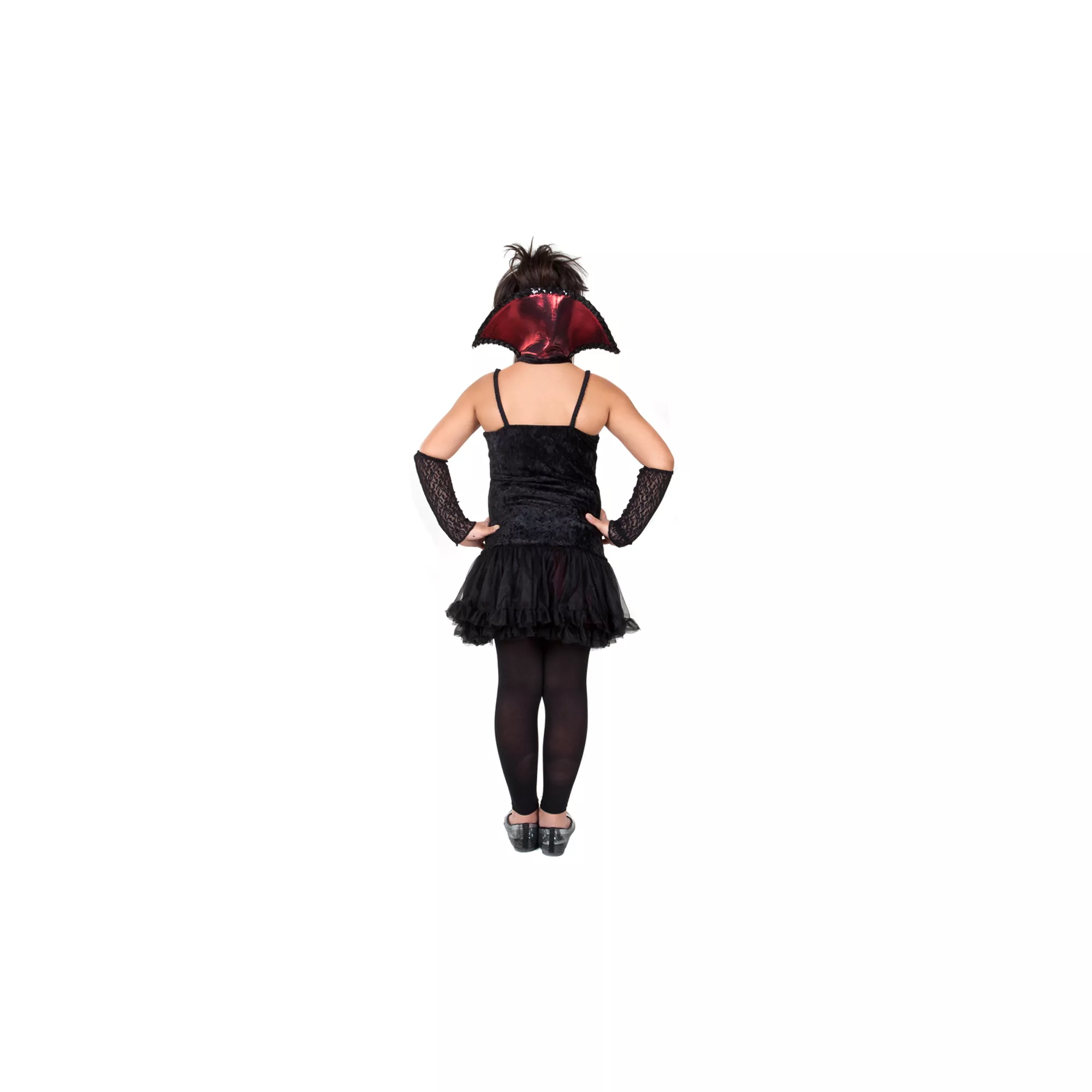 You are a Gothic beauty in this wickedly stylish Dark Red Vampire girls costume. With a stand-up collar, arm warmers and leggings your look is authenticated and terrifyingly beautiful!