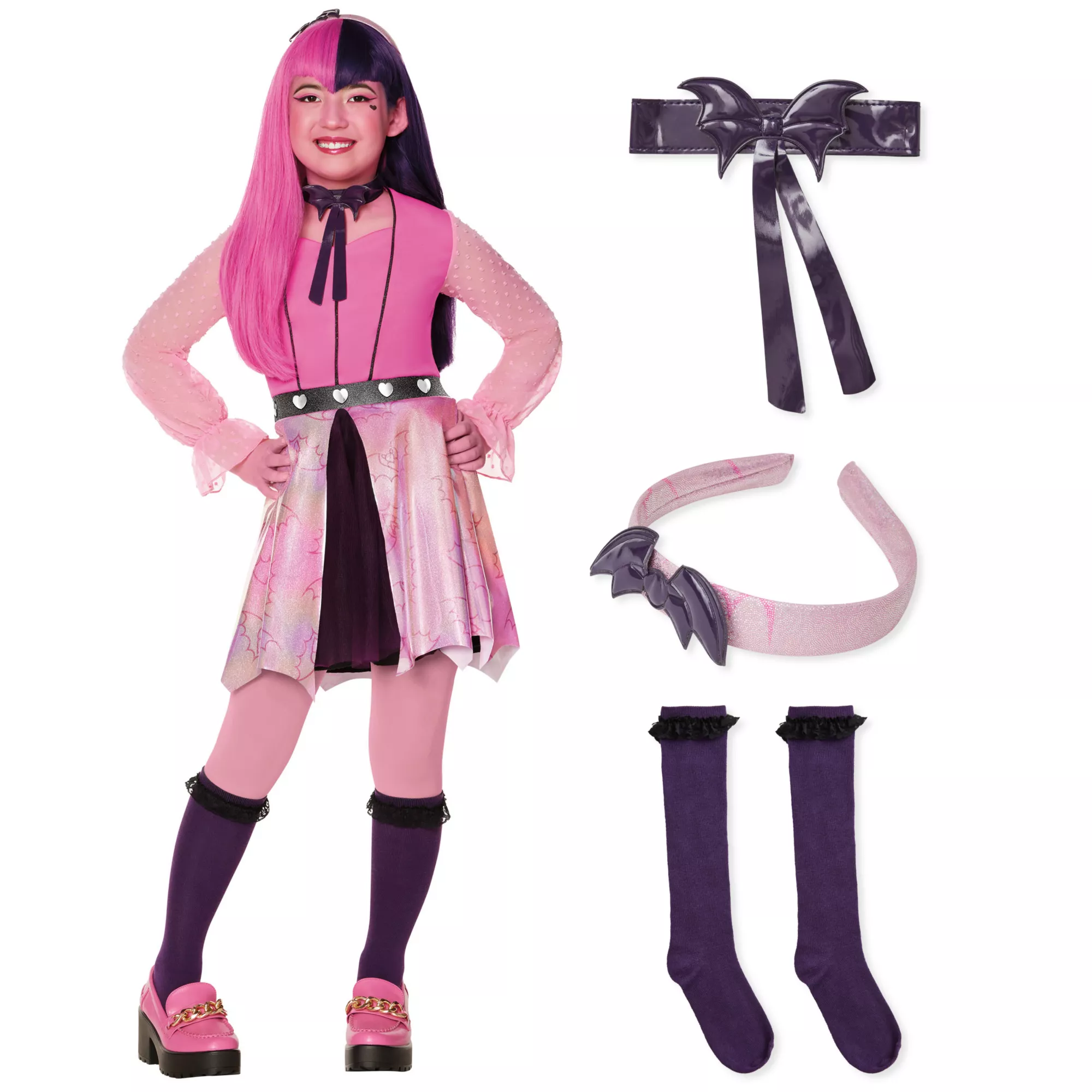Love Draculaura from Monster High? She's been the queen of fashion for 1,600 years, and now you can look just like her this Halloween! This officially licensed Draculaura costume includes a beautiful dress, a necktie, knee socks, and a headband, providing everything you need to nail the look.