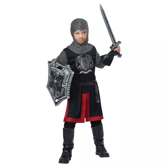 Protect your lord when you wear this dragon knight costume on Halloween! You'll be ready for battle at any time with the included tunic, hood, gauntlets, boot tops and belt!