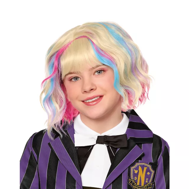 Put the cherry on top of your Enid costume this Halloween when you sport this officially licensed Kids Enid Wig! Made with an enchanting blend of her iconic platinum, pink, and blue locks, this wig is a must-have for Wednesday fans.