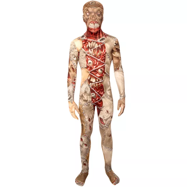 Take on a new look when you wear the Facelift Monster Child Costume. This see-through and breathable skin suit features a double zip, reinforced closure and wicked graphics that depict a suit made from sewn together human skin.