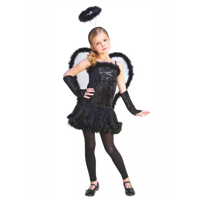 What dreadful deed did you do to deserve such a fate? Make up your own back story when you wear this Fallen Angel girls costume. The velvet and mesh garment comes complete with black, crushed velvet dress, marabou-trimmed wings, gloves, headpiece and leggings.