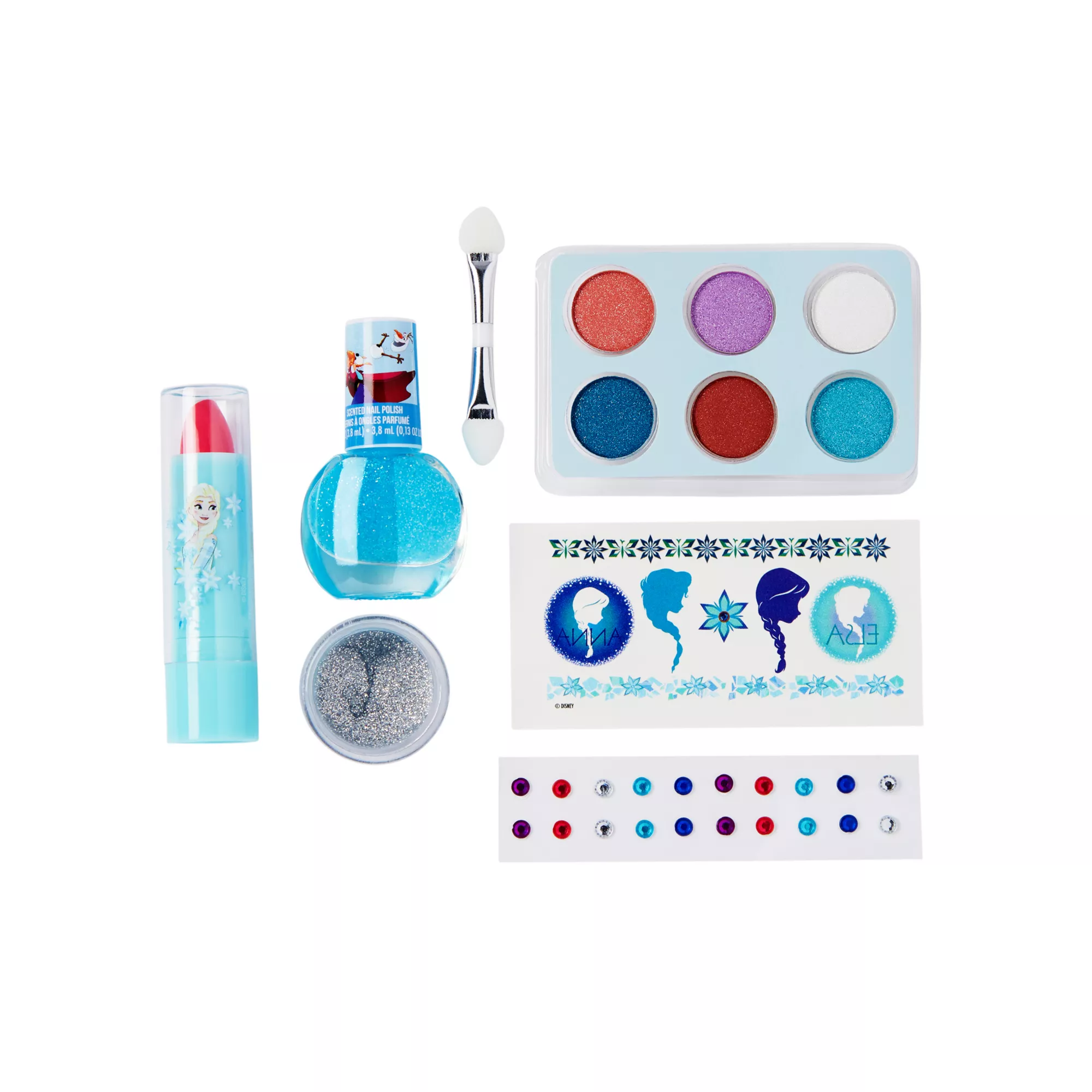 Turn yourself into an ice princess with this officially licensed Frozen makeup kit! Coming complete with one eye shadow palette, scented nail polish, glitter gel, lipstick, one applicator, stick-on jewels, and temporary tattoos, this set will have you feeling like a member of the cast in no time at all!
