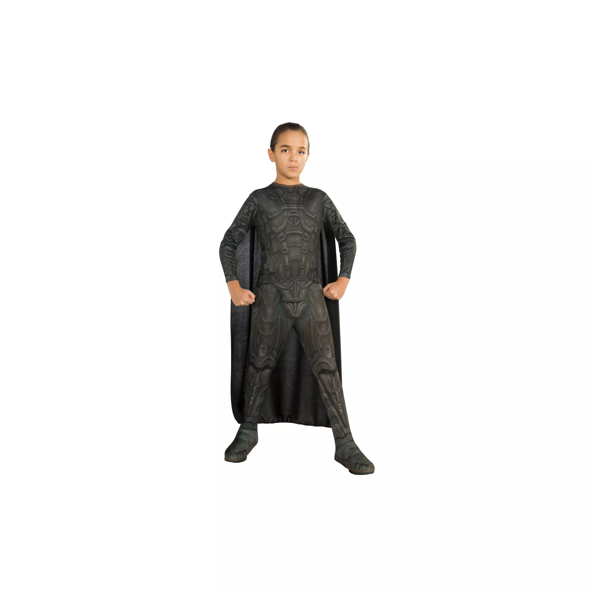 Take charge of the planet Krypton's military forces on Halloween when you wear this officially licensed Superman General Zod child costume. The black and gray jumpsuit of this villain costume features attached boot tops and comes complete with a cape and belt.