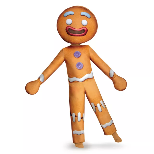 Run as fast as you can! They can't catch you, you're the Gingerbread Man! Help Shrek, Fiona, and Donkey along their adventures when you dress in this officially licensed Shrek Gingy Deluxe Child Costume! This gingerbread man loves a good song and the Muffin Man, his creator, who decorated this jumpsuit with two purple gumdrop buttons and white glaze. Also, the character headpiece features similar decorations along with mesh in the mouth for visibility! No need for a glass of milk when you are dressed as this sweet cookie!