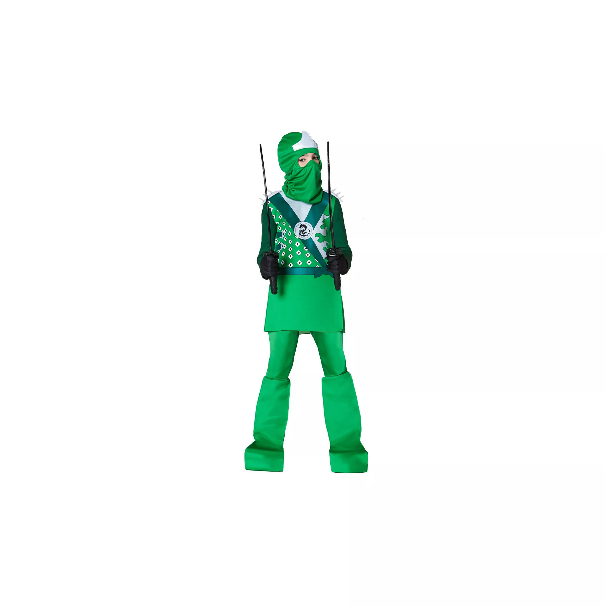 Dominate Halloween when you use your fighting skills and stealth while wearing the Green Ninja Fighter Child Costume. This green top features ninja character graphics and attached shoulder spikes, complete with matching pants with boot covers and a green ninja hood.