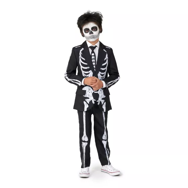 Is your kid looking for the perfect Halloween costume? Look no further than this bad to the bone suit!  They will surely steal the show wearing the Skeleton Grunge while trick-or-treating this Halloween. The outfit consists of a jacket, pants and a safe clip-on tie. The pants have an adjustable waistband for a comfortable and stylish fit.