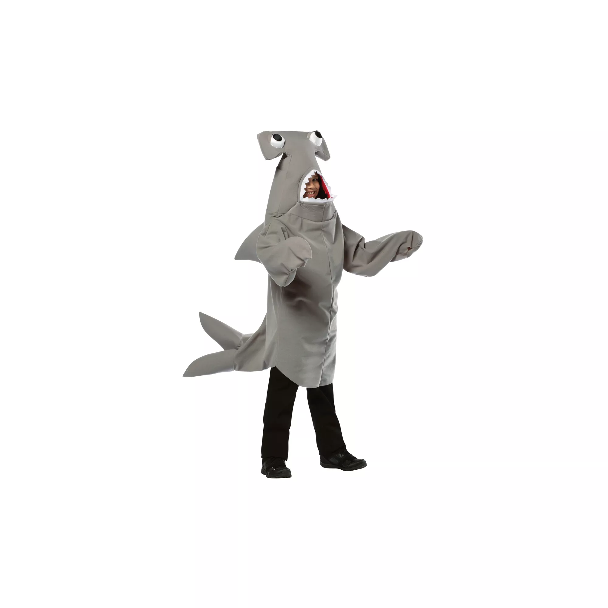 Come out of the ocean and terrorize the land when you wear this Hammerhead Shark Child Costume. This awesome grey outfit features two eyes and a distinct hammerhead snout! Take a bite out of Halloween!