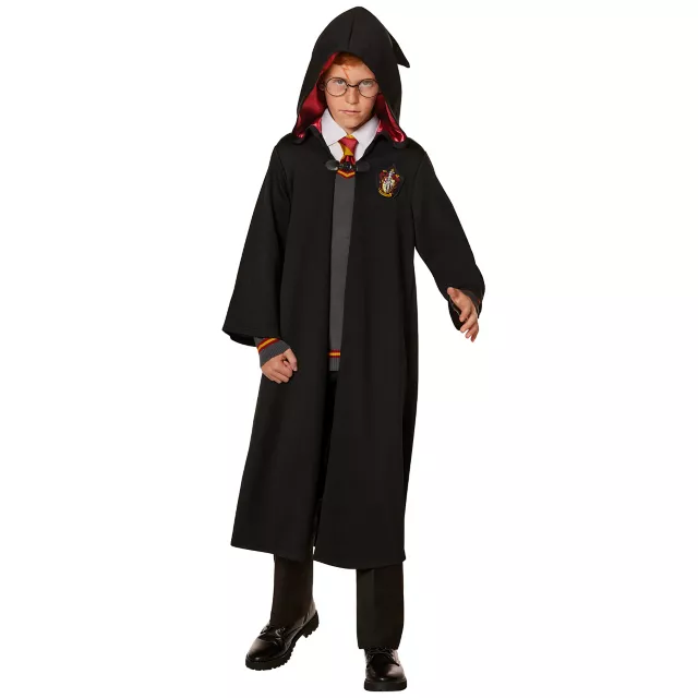 Dress up just like your favorite wizard in this kids Harry Potter costume! Complete with a Harry Potter sweater, collar, robe, and tie, you'll look ready to cast spells from Hogwarts in this iconic Harry Potter outfit.
