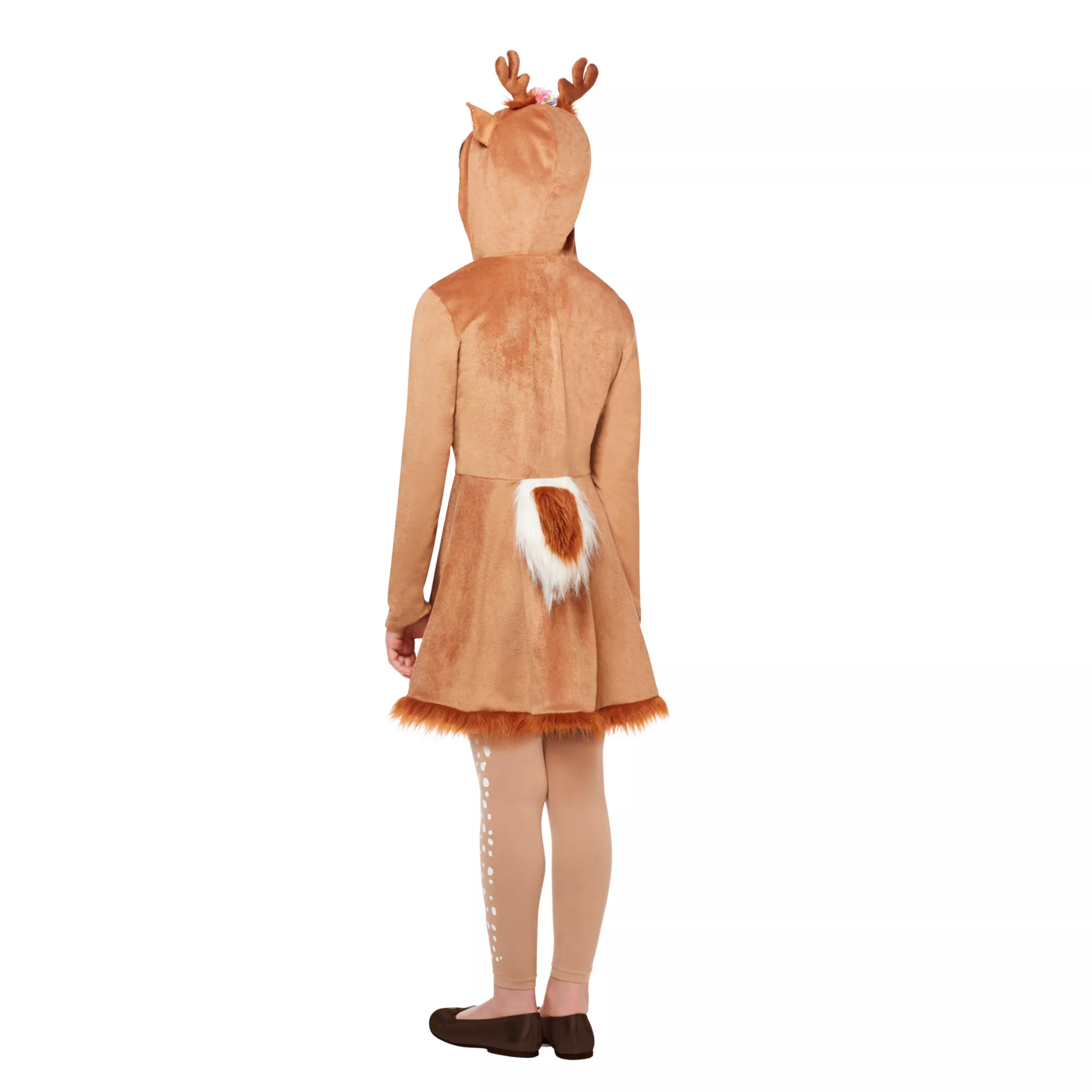 Oh deer! This hooded dress will make you the finest fawn in all the forest. A hood with attached antlers and faux fur trim put this dress at the head of the herd!