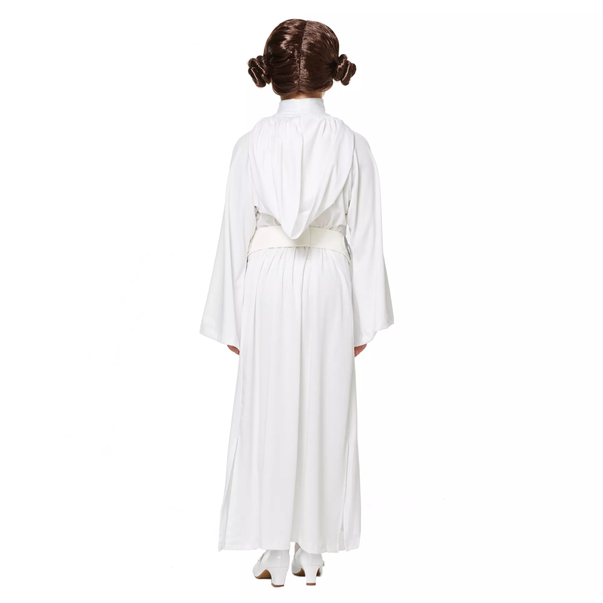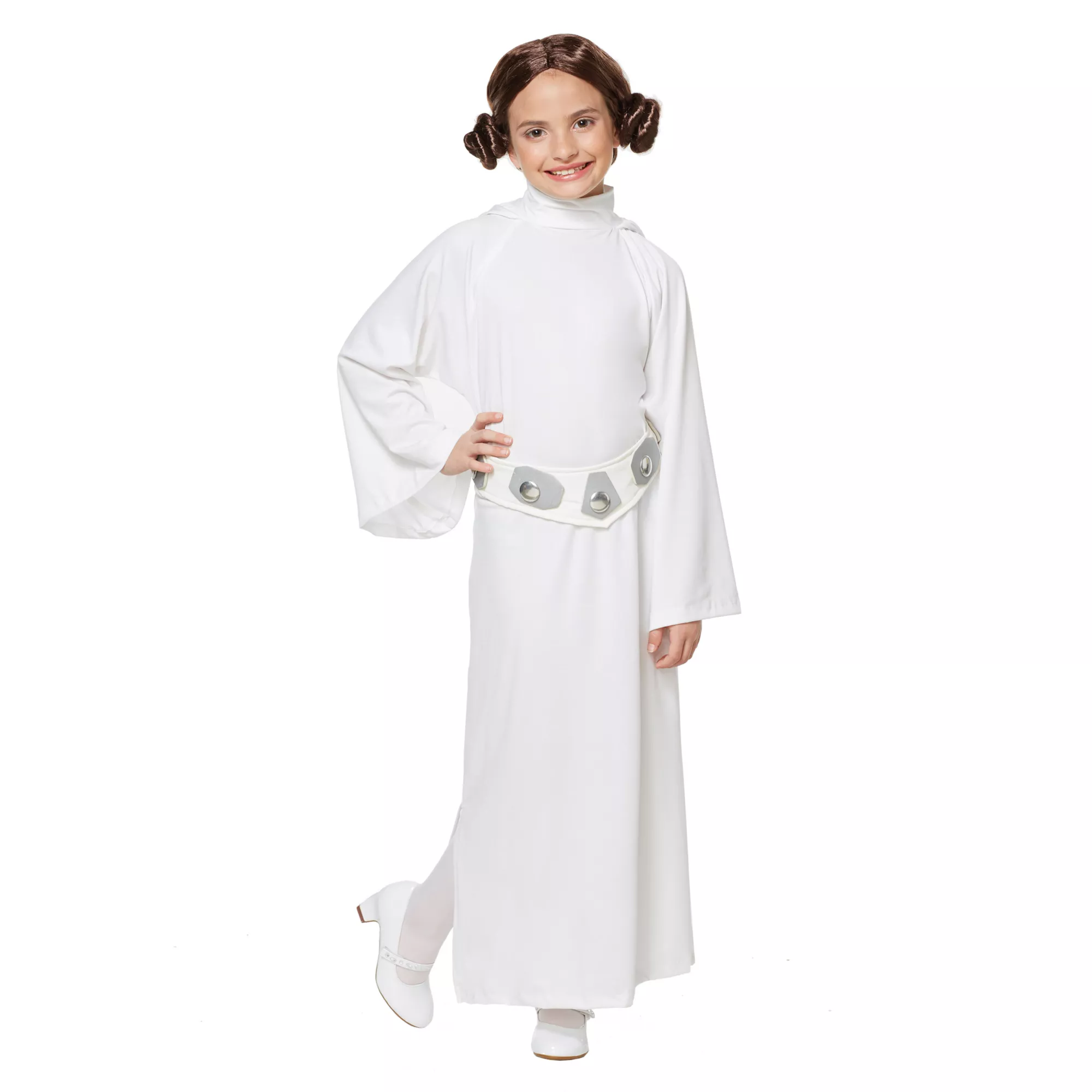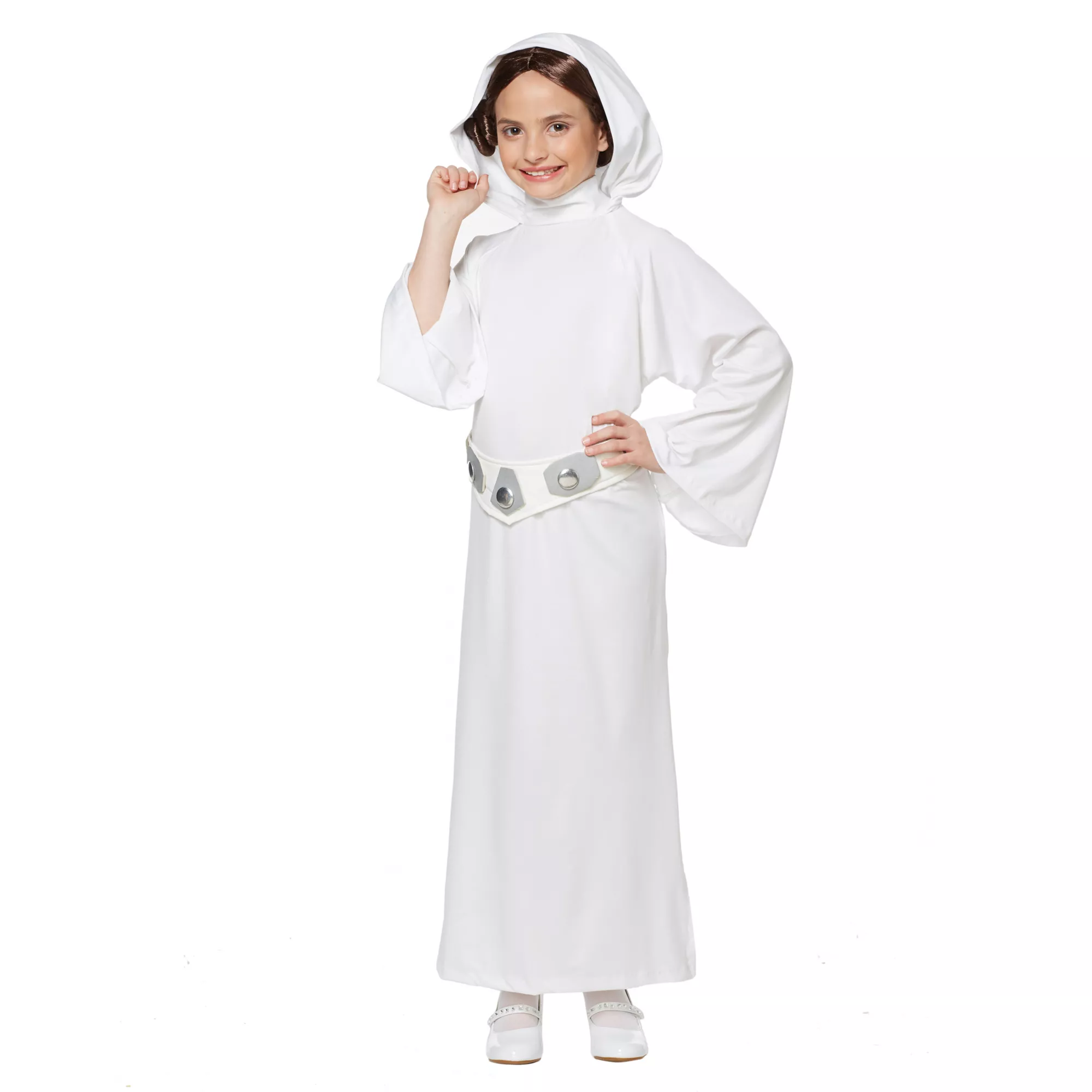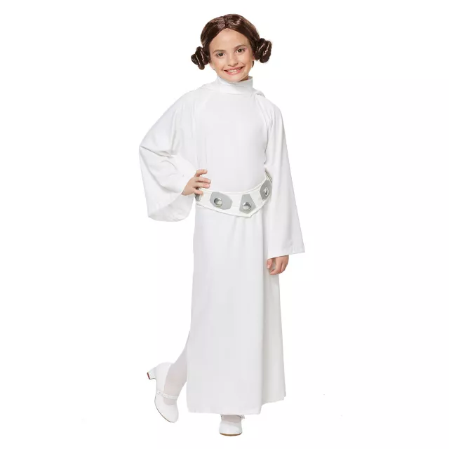 Join Luke Skywalker and Han Solo on an adventure with this officially licensed Star Wars Princess Leia Child Costume. Features white hooded dress, brown Princess Leia bun wig, and white belt with three silver plates like the one Leia wears in the movies! As one of the Rebel Alliance's greatest leaders, be reading to end the tyranny of the Empire and take down Darth Vader.