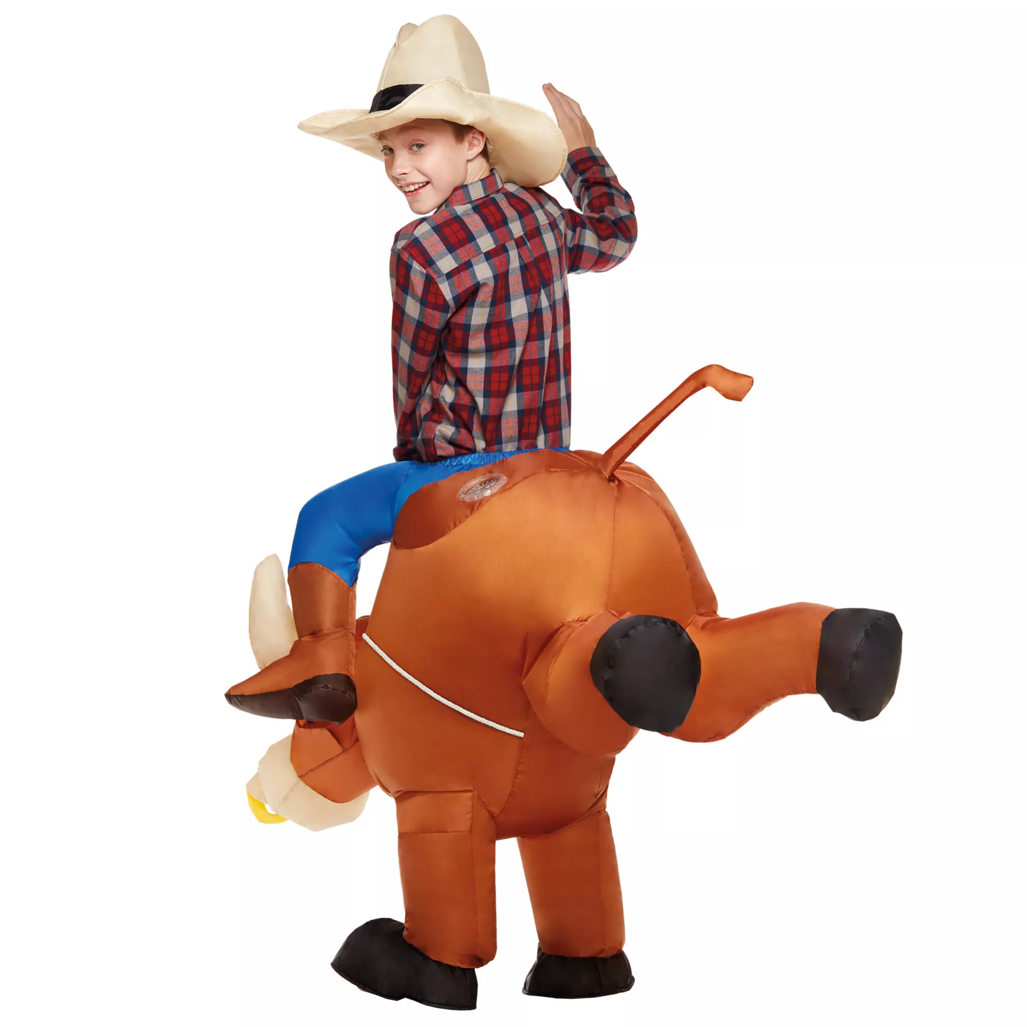 Rope in all the candy when you dress up in this kids inflatable bull rider costume! This funny costume is the perfect Halloween look when you want to have fun and get all the applause (and candy) from everyone who's laughing along with you.