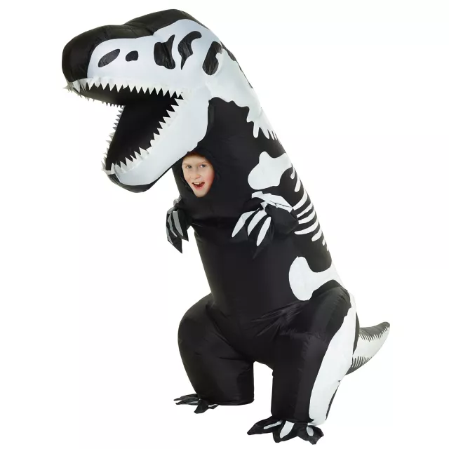 The dinosaurs may be extinct, but the Inflatable T. rex Skeleton Costume is sure to bring some life to any prehistoric party. This black and white inflatable costume fits most and closes with a back zipper, making it a convenient option for any fossil fanatic. Pair this costume with an impressive roar and you’ll be sending the other kids running in no time! Come by Spirit Halloween for the coolest costume in prehistory.