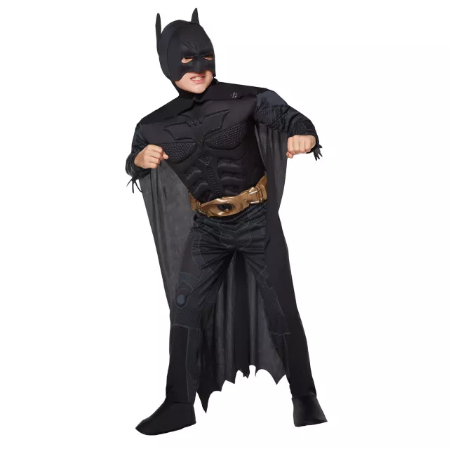 Gotham needs you - So suit up in this officially licensed Batman Dark Knight Light-Up boys costume. The black character jumpsuit of this Batman costume features a light-up bat emblem and comes complete with a matching character headpiece, belt and cape.