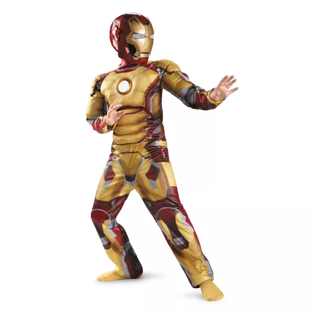 Light up the trick-or-treat on Halloween when you wear this officially licensed Iron Man Mark 42 Light-Up Child Costume. This red and gold jumpsuit features a light-up arc reactor and comes complete with LR44 batteries and a character helmet.