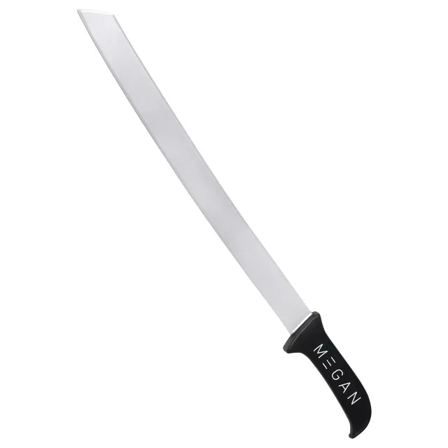 Channel your inner horror icon when you rock this officially licensed Kids M3GAN Paper Cutter Machete! Made with a smooth, metallic blade and an easy-grip hilt inscribed with M3GAN's name, this machete accessory will have you slaying any Halloween look.