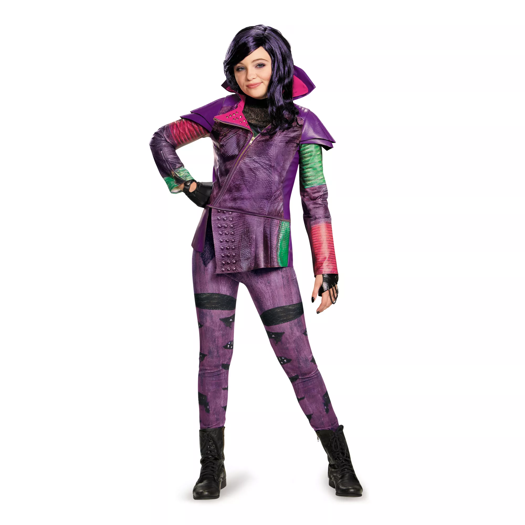 Bring your villainous style together with this officially licensed Descendants Mal Girl's Jacket! The colorful jacket features studs, a fierce collar, and a cross zip closure, perfect for carrying out your mother's evil plan of stealing the Fairy Godmother's wand! Look great and stay warm on Halloween in this jacket and pair it with the Mal costume (sold separately) to embrace the true character!