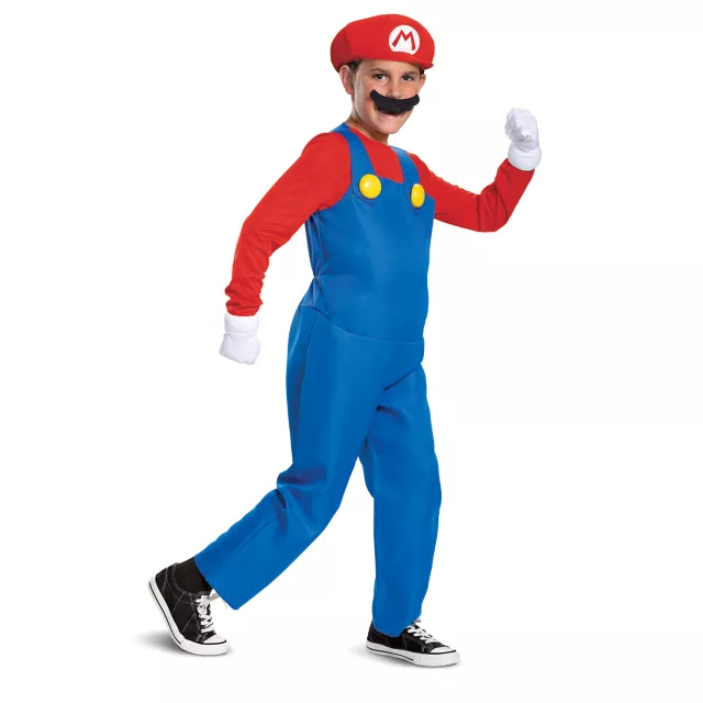 Rescue Princess Peach from the clutches of the evil Bowser on Halloween when you wear this officially licensed Mario Bros. Mario Deluxe Boys Costume. The red and blue character jumpsuit comes complete with a matching red hat, a built-in padded belly, gloves and a faux mustache.