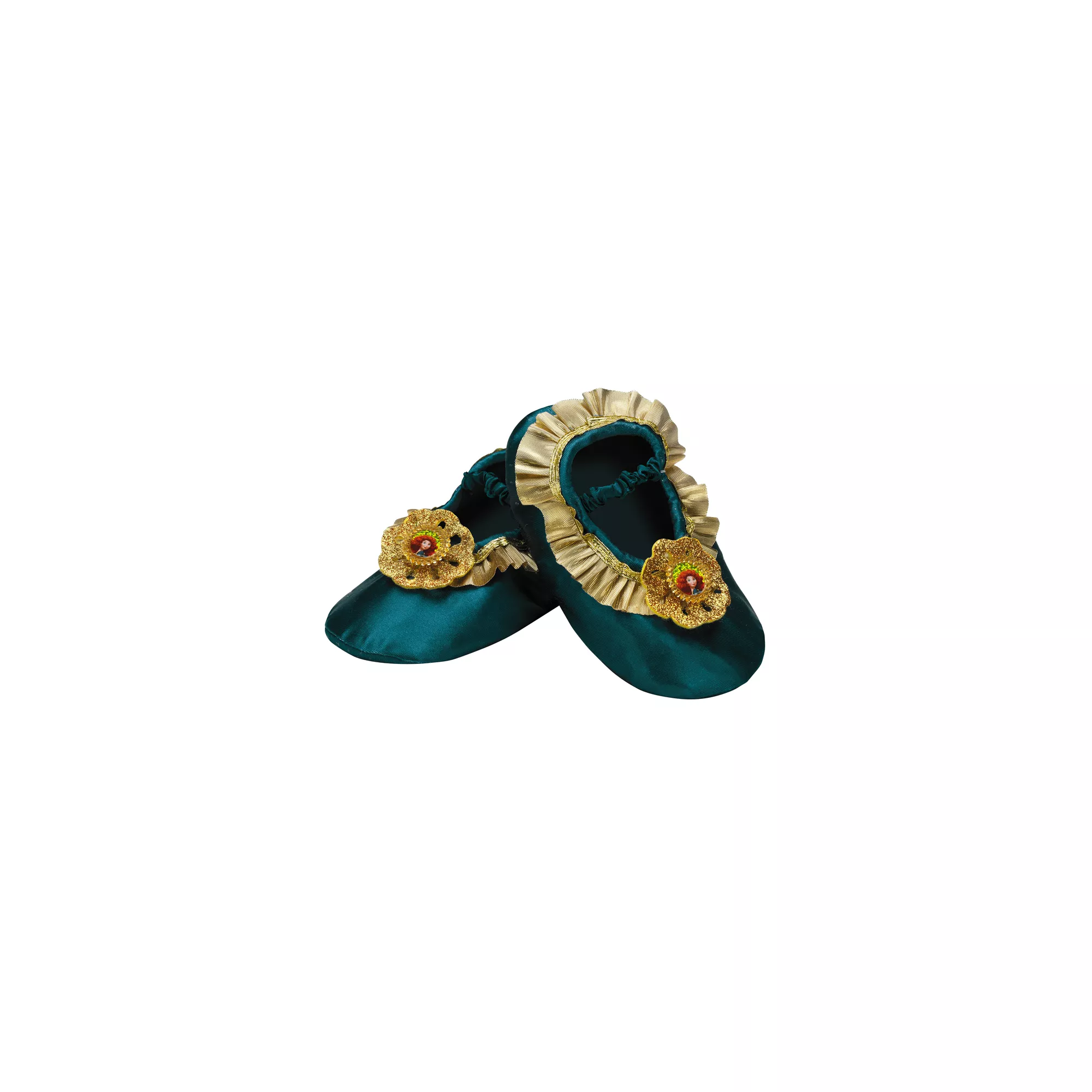 Complete your daring little princess's costume when you get her the officially licensed Disney Brave Merida Child Slippers. These cute, green slippers features an elastic band to keep them secure on the foot along with a tiny Merida cameo detail.