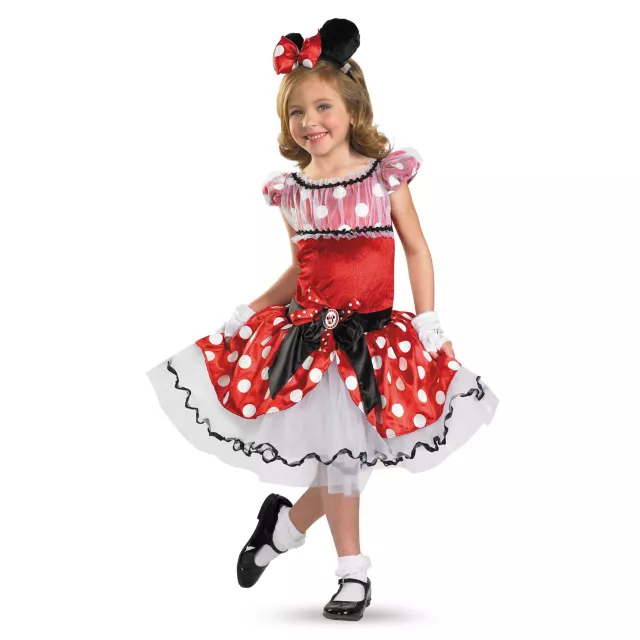 Dress her up in this adorable officially licensed Disney Minnie Mouse Tutu Child Costume. Your little one will bring you back to the good old days in this polka dot pettiskirt dress with ribbon hem, classic white gloves, and mouse ears with matching bow. This cute costume will never get old.
