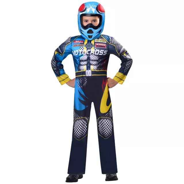 Vroom, vroom! Let your little guy speed through Halloween in this motocross costume! Padded jumpsuit and helmet mask will have your little one looking like a professional motorist!