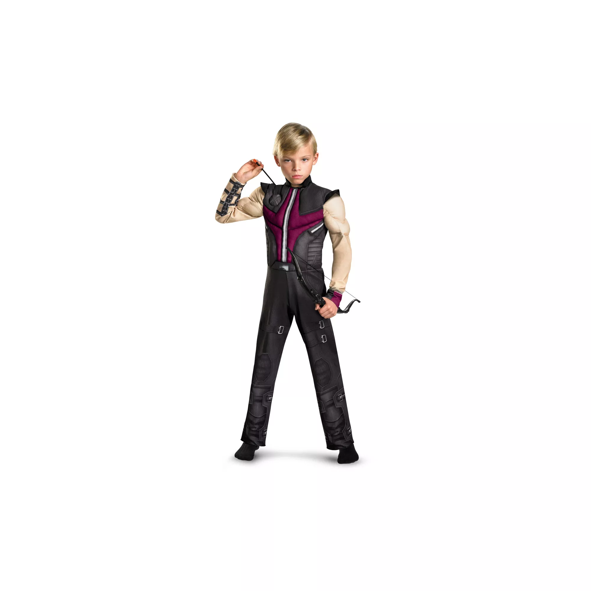 Join forces with the rest of the Avengers to fight evil Loki and protect planet earth as we know it when you don the officially licensed Avengers Hawkeye muscle child costume. The maroon, black, gray and gold character jumpsuit features a muscle chest.