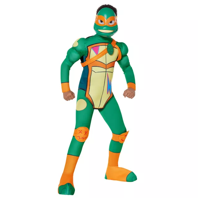 Cowabunga, dude! Help defeat the Foot Clan this Halloween when you unleash your turtle power with this officially licensed Kids Muscle Michelangelo Costume. This Rise of the TMNT costume includes everything you need to embody the wildest ninja turtle featuring a Mikey jumpsuit, mask, and a turtle shell. After a long day of crime fighting, there’s nothing better than some pizza to celebrate!