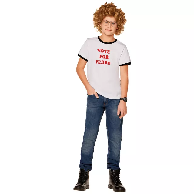 Celebrate a classic comedy in this kids' Napoleon Dynamite costume! Including an official “Vote for Pedro” ringer t shirt, a curly wig, and a pair of super-nerdy glasses, you’ll look just like the iconic titular character.