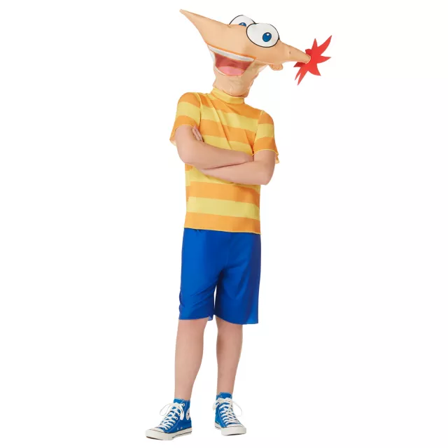 What are you going to do today in your Officially Licensed Phineas and Ferb Phineas Boys Costume? Collect lots of candy! Pester the best candy out of your neighbors in this delightful striped shirt, blue shorts and Ferb headpiece.