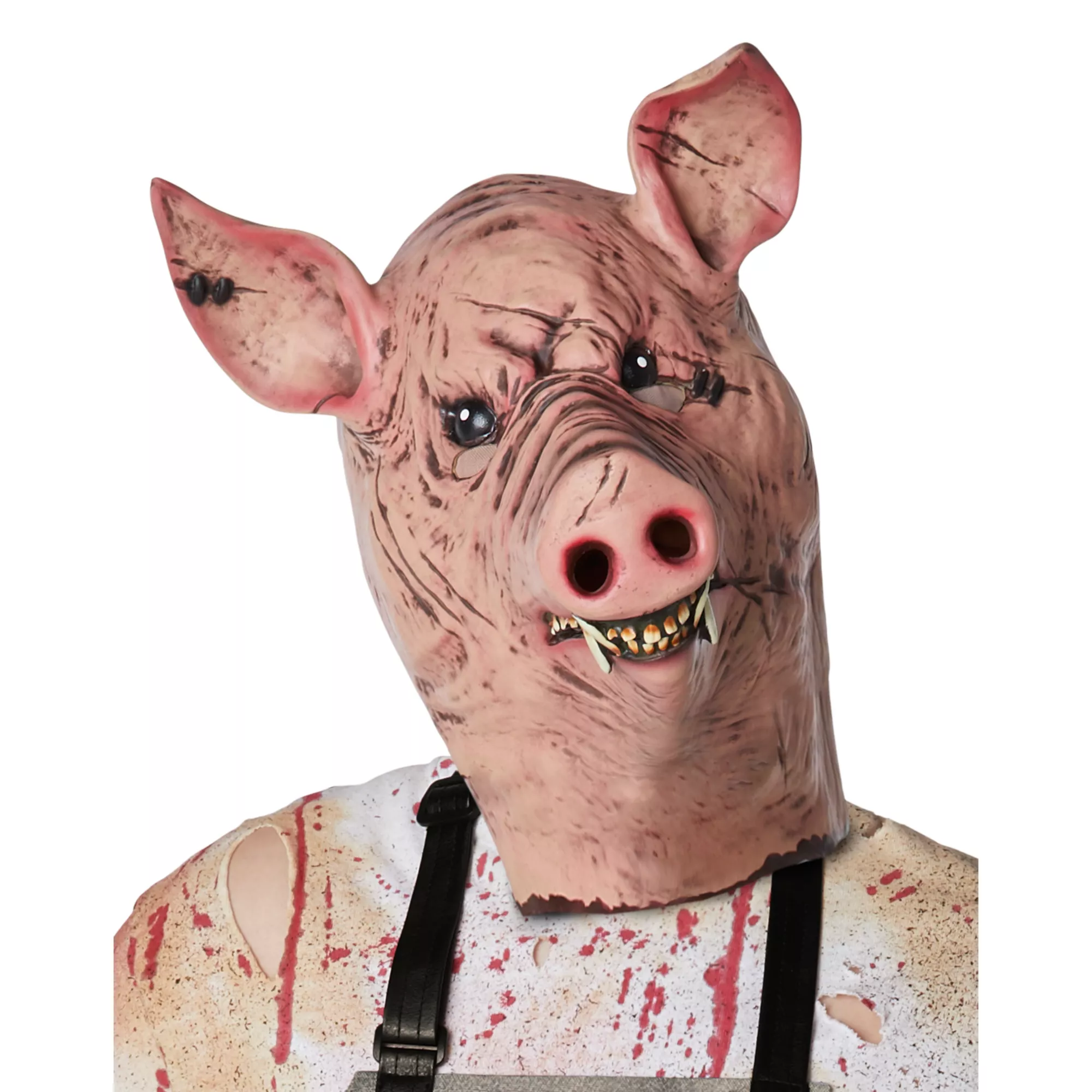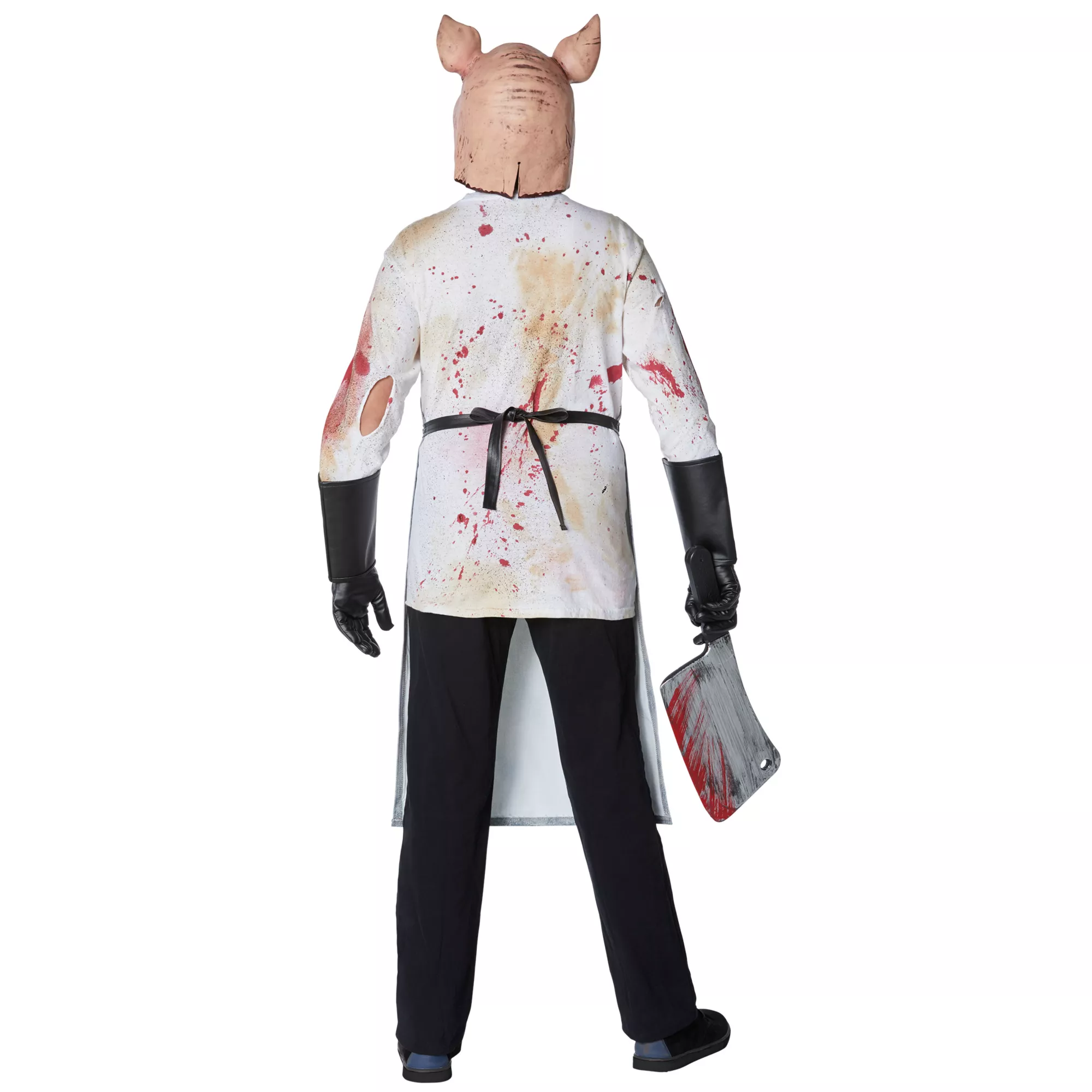 Oink oink! It's the dreaded pig butcher! This frightening costume will transform you into the scariest butcher in town. Featuring a pig mask, tie-back apron, long butcher's gloves, and a meat cleaver prop, this pig butcher ensemble will chop its way into your nightmares.
