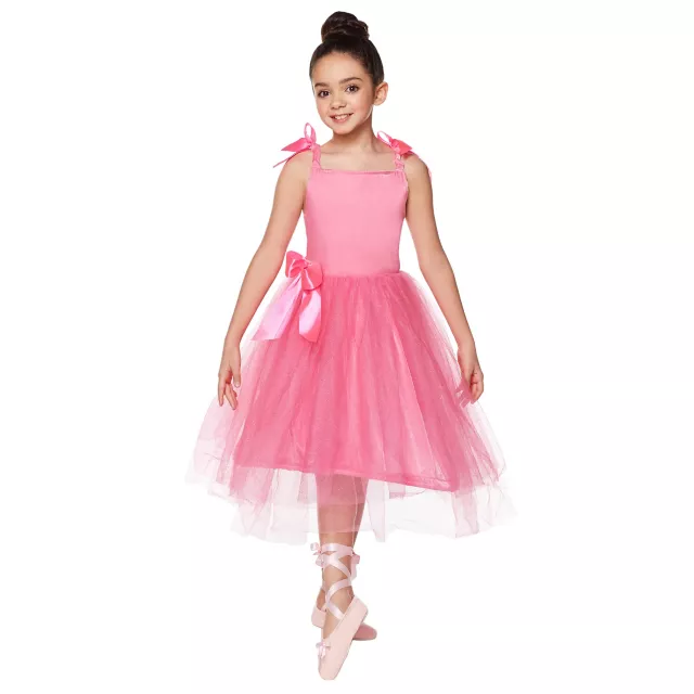 Glide across the stage like a true ballerine with this prestige quality costume. Perform your finest moves while looking poised and perfect in this stunning dress which features bold bow detailing, shimmering tulle overlay, and a radiant pink bodice. This premium costume will make you the most graceful dancer of them all this Halloween!